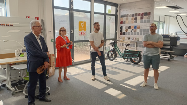 FABEON (impressions 2D et 3D) < Plan médian à gauche, en chemise à carreaux, Philippe VANNEROT, V-P de France Additive Premier plan à gauche: Georges TAILLANDIER, Président d'Honneur de France Additive > |