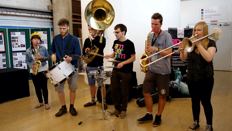 ![]() Les AEFA 2016 ayant eu lieu au moment de la Fête de la Musique, une fanfare est venue animer l'événement... ...fanfare dont les instruments ont certaines pièces en plastique imprimées en 3D. |