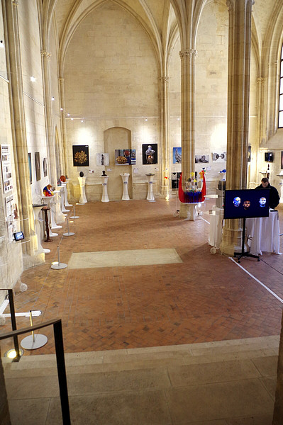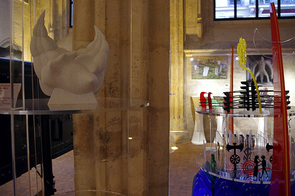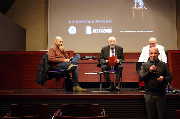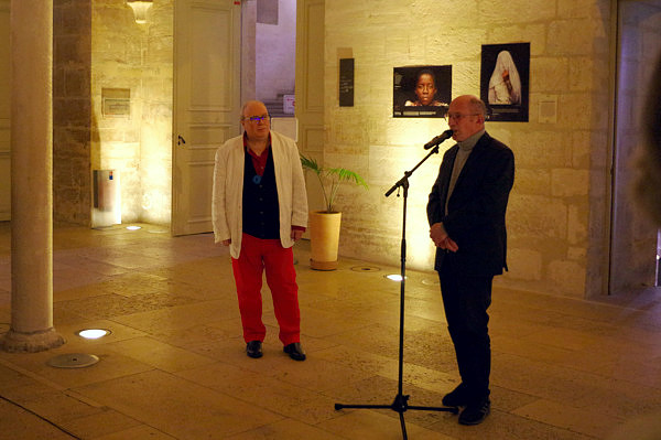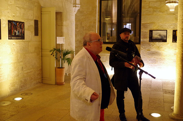 | Inauguration : Christian LAVIGNE (à gauche), Pdt d'AM Pierre KORZILIUS (à droite), Directeur du Pôle Art et Culture du Collège des Bernardins |