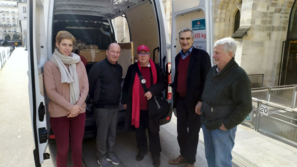 archives. De gauche à droite: Kyllian Rétory (notre étudiant stagiaire en informatique), Pierre Korzilius (Directeur du Pôle Art et Culture du CDB), Christian Lavigne (PDT d'AM), Jean-Louis Bougeret (SG d'AM), Jean-Louis Jannin (que nous remercions tout particulièrement pour s'être occupé de ladite camionnette). |