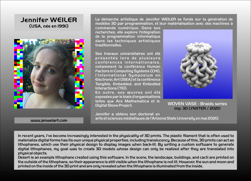 imprimé en 3D d'après un scan réalisé par Laura WEST en