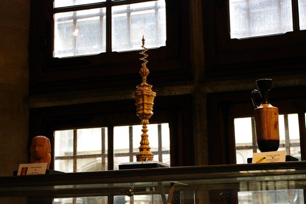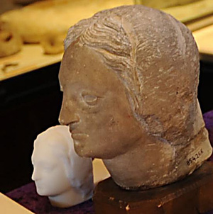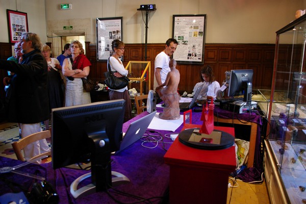 CHARPIGNON, entourée par deux répliques d'objets antiques par le procédé couleur Zcorp |