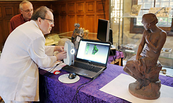 CALLET (au fond à gauche) et Christian LAVIGNE: scan 3D d'une terre-cuite de Paul DELAROCHE (1797-1856) photo Didier GIARD, Ville de VERDUN > |