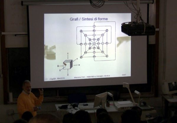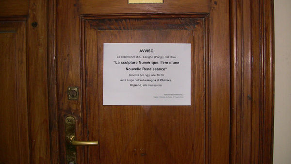 2010 : une invitation de l'Université de Cagliari, Département de Mathématiques, pour présenter la sculpture numérique, les activités d'ARS MATHEMATICA, et introduire aux relations entre arts, sciences et technologies. Merci spécialement au Dr. Gregorio FRANZONI, au Pr. Renzo CADDEO, et au Dr. Paola PIU. |