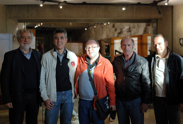 gauche à droite: Pr. Renzo CADDEO, Dr. Stefano MONTALDO, C. LAVIGNE, le gardien des lieux, Dr. Gregorio FRANZONI. |