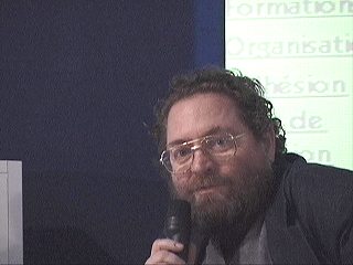 UN OU DEUX MOTS / MAUX DE CONCLUSION Cette après-midi du vendredi 27 avril 2001, qui a cloturé notre événement du FUTUR DU TRAVAIL à la Cité des Sciences et de l'Industrie de Paris, a été préparée par l'association TOILE METISSE, à l'initiative de son Président, Christian LAVIGNE. Nous tenons à remercier tous les intervenants que nous avons invités au fil des jours de ce mois d'avril 2001, et qui ont largement contribué à la haute qualité de nos ateliers de création et de réflexion. Malheureusement, faute de soutien de la part du Ministère de la Culture, nous avons dû renoncer à la présence de certains conférenciers étrangers, auprès desquels nous renouvelons nos excuses. Autre déception, il faut le dire, des horaires et des jours d'ouvertures vraiment peu pratiques nous ayant été imposés par la CSI, nos invités et nous-même n'avons pu recevoir la quantité de public que nous pouvions intéresser à nos travaux. En outre, cet établissement - qui coûte une fortune à l'Etat - n'a absolument pas fait la promotion que l'on pouvait attendre de lui pour l'espace assez conséquent qui nous avait été réservé. Le plus petit musée de province aurait mieux fait en termes de communication et de fréquentation pour un sujet aussi pertinent. Il y a donc une sorte d'ironie à espérer que l'organisation actuelle de cette grosse machine publique qu'est la Cité des Sciences, telle que nos l'avons éprouvée, ne représente aucunement "le futur du travail" ;-) ! Bien évidemment, cette remarque ne nous dispense pas, au contraire, de remercier chaleureusement ceux des responsables de la CSI qui nous ont aidés et accueillis avec enthousiasme, en défiant la loi d'entropie locale qui disperse tant d'énergies. Leur patience et leur effort, comme les nôtres, n'auront pas été vains. Sans qu'il soit possible ici de développer le sujet, il serait grand temps que les institutions françaises prennent la mesure de l'évolution des Arts Electroniques et de l'enjeu des NTIC dans le domaine des échanges culturels Nord-Sud en particulier. Ou bien l'Etat se mèle de ces questions et décide d'une politique d'aide générale à la recherche littéraire et artistique, sans parti pris (création de centres et de réseaux transdisciplinaires, d'espaces d'expositions adaptés, de programmes de rencontres internationales); ou bien il abandonne ses prérogatives d'ancien régime en la matière (le fait et le goût du Prince chez les hauts fonctionnaires de la culture pourrissent la situation des arts en France) et favorise le mécènat, les fondations privées, par des mesures fiscales encourageantes, tout en donnant aux enfants des écoles une image positive de la création intellectuelle, un désir d'art et de culture qui en feront des amateurs et des consommateurs potentiels. Les associations ARS MATHEMATICA et TOILE METISSE donnent rendez-vous aux hommes de bonne volonté intéressés par les rencontres culturelles et technologiques, à la fois sur le Web et lors de manifestations à venir, telles qu' INTERSCULPT 2001. textes et photos ©Christian LAVIGNE, avril-mai 2001 |