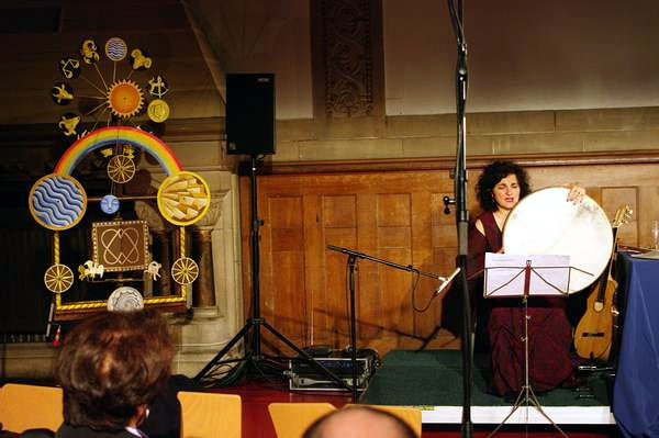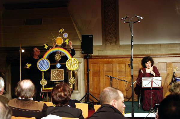 Récital de Roula SAFAR, compositrice et mezzo-soprano: "Voyage musical au pays des étoiles". A gauche, décors de La compagnie "Théâtre au Clair de Lune" créée par Damien SCHOEVAERT-BROSSAULT. |