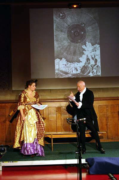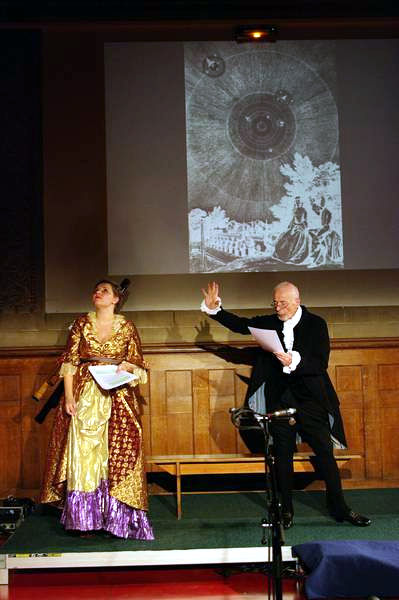 | Le texte de FONTENELLE a été résumé par Christian LAVIGNE et par Simon EINE. Le décors en fond de scène est un diaporama avec intermèdes musicaux, créé par Christian LAVIGNE. La lunette astronomique fin XVIIe début XVIIIe siècle a été réalisée par Eric PASCALIS. |