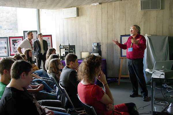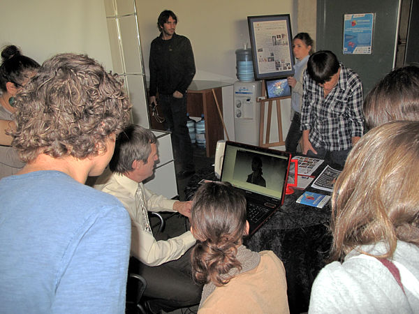 | F. ARNOUL montre le résultat du scan 3D à la jeunne fille dont il a saisi le portrait | ![]() |