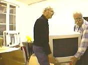| Rosiejak, spécialiste des télécom, et Lavigne | Alexandre Vitkine, devant sa machine Charlyrobot | Vitkine et Lavigne père, en plein démontage |