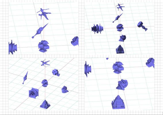 Plan de réalisation d'une animation en vidéo stéréoscopique à partir des sculptures numériques de Mary VISSER, Brit BUNKLEY, Keith BROWN, Stewart DICKSON, Robert SMITH, Alexandre VITKINE, Christian LAVIGNE - - - Plan de C. LAVIGNE réalisation L. VERDUCI / VIDEORELIEF |