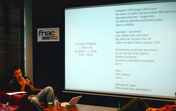 En 1769, dans Le Rêve de d'Alembert, Diderot a prêté à Julie de Lespinasse et au médecin Bordeu le dialogue suivant : " Melle de Lespinasse – Que pensez-vous du mélange des espèces ? […]. Bordeu — Votre question est de physique, de morale et de poétique. Melle de Lespinasse – De poétique ! Bordeu — Sans doute ; l’art de créer des êtres qui ne sont pas, à l’imitation de ceux qui sont, est de la vraie poésie". Au vingtième siècle, cette "vraie poésie" semble devenue pratique routinière pour les généticiens. Comment la création littéraire et artistique a-t-elle réagi à l'apparition de techniques de fabrication ou de manipulation du vivant, qui lui offrent de nouvelles matières ? Le code génétique, s'il est un texte, peut-il se recomposer poétiquement ? Le poème, qu'une longue tradition compare, pour sa structure, à un organisme, doit-il changer de forme pour suivre l'évolution des savoirs en la matière ? Peut-on créer une chimère à des fins esthétiques ? Signer un animal d'art ? En étudiant des textes d'auteurs comme Henri Michaux, Christian Prigent ou Christophe Hanna (qui compare la poésie à une arme virale), ou des œuvres d'artistes comme Orlan ou Eduardo Kac (dont la pièce Genesis inscrit des fragments de texte dans le patrimoine génétique de bactéries), on évoquera des cas d'emprunts ou de collaboration entre créateurs et scientifiques, et on s'interrogera sur la portée critique des fantasmes ou des usages du vivant présentés par ces œuvres. A la question posée en 1945 par le physicien E. Schrödinger « Qu’est ce que la vie , » la seconde moitié du XX ème siècle n’a répondu que très partiellement, en tentant d’acclimater en biologie les révolutions conceptuelles et les techniques de la chimie, de la physique et des mathématiques. La cybernétique et la thermodynamique des processus irréversibles ont ancré les concepts liés à la description des systèmes ouverts . La cristallographie et la chimie ont fourni la structure de l’acide désoxyribonucléique (ADN) et ouvert la voie à la biologie moléculaire en décryptant des maillons centraux de la génétique. La théorie de l’information et les théories du calcul informatique peinent à interpréter les données accumulées par la biologie moléculaire. Les grandes avancées de la dynamique non-linéaire, marquée par la découverte du chaos déterministe, tout en ouvrant la voie vers la compréhension des systèmes complexes et de l’auto-organisation, n’ont pas permis de dégager des principes spécifiques du vivant et de son évolution. Il n’ y a pas de Biologie Théorique au même titre où l’on parle de Physique Théorique. Un constat qui ressort bien de la lecture du dernier livre de E. Fox Keller : « Expliquer la vie ». C’est dans ce contexte que l’explosion des biotechnologies inquiète, car la puissance des manipulations génétiques se trouve mal encadrée par l’état général des connaissances biologiques. De plus, en bousculant de nombreux cadres de référence, les pratiques biotechnologiques viennent ajouter leur part de trouble dans la perception contemporaine du réel. Un réel qui apparaît de plus en plus comme une construction de l’esprit, ou qui tout au moins doit composer avec le sujet connaissant. Un univers où l’objectif et le subjectif, le naturel et l’artificiel se distinguent mal, et où le réel et l’imaginaire se trouvent emmêlés. ![]() Face aux biotechnologies, la pratique artistique doit assumer les incertitudes de la science et la confusion des genres de la technologie. L’art joue à la fois un rôle de diffusion et de vulgarisation de la connaissance scientifique et technique, et un rôle de réservoir d’imaginaire permettant d’acculturer et d’étendre la connaissance du monde par la science. Dans ce rôle médiateur l’art doit sans cesse se renouveler au risque d’y perdre sa propre perception sociale. Les artistes ne cherchent pas à faire concurrence aux généticiens ou aux chirurgiens plastiques, mais à placer les exploits de ces ingénieurs du vivant dans une lumière culturelle qui en favorise l’intégration émotionnelle et rationnelle. Ce n’est pas le lapin vert transgénique d’E. Kac qui est une œuvre d’art, mais c’est la mostration publique de ce lapin qui en suscitant l’émotion devient un événement de la sphère artistique. L’art défend une stratégie de la conception du monde où la démarche ludique joue un rôle tout aussi important que l’approche rationnelle. Loin de constituer une de ces provocations dont l’art contemporain est coutumier, l’art biotechnologique acquiert une légitimité de par la fonction naturelle qu’il remplit. C’est bien ce qui apparaît dans la création ces jours ci à la Faculté des Sciences de l’Université d’Amsterdam d’un centre « The Arts and Genomics Center ». Première mondiale d’une institutionnalisation de la collaboration entre l’Art et la Science. Art and Genetics Bibliography. Leonardo Online. http://mitpress2.mit.edu/e-journals/Leonardo/isast/spec.projects/art+biobiblio.html Art and science. Wellcome Trust. http://psci-com.org.uk/browse/ypages/700.html The Arts and Genomics Center. http://www.artsgenomics.org Genetics and culture: from molecular music to transgenic art. Course. http://www.viewingspace.com/genetics-culture.htm Dossier art biotech. http://www.transfert.net/d52 DOC(K)S. Revue de poésie expérimentale. Numéro en chantier : « De la nature » De l’imitation au clonage…… http://www.sitec.fr/users/akenatondocks/ A. PICHOT. Histoire de la notion de gêne. Flammarion. Champs. Paris. 1999. E. FOX KELLER. Expliquer la vie. Modèles , métaphores et machines en biologie du développement. Gallimard. Paris. 2005. H. MODE. Démons et animaux fantastiques. Aux Quais de Paris. Librairie G. Kogan. 1977. CHIMERES. Monstres et merveilles de la mythologie aux biotechnologies. Catalogu