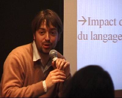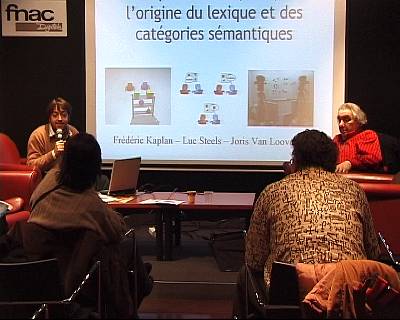 | INTERVENANT Pierre-Yves OUDEYER Chercheur au Sony Computer Science Lab Pierre-Yves Oudeyer est chercheur au Sony Computer Science Laboratory à Paris. Il fait des recherches sur les origines de la parole, et construit des sociétés de robots pour étudier comment des conventions linguistiques partagées peuvent être construites culturellement. En particulier, il étudie le rôle de l’auto-organisation dans le couplage entre les modalités sensori-motrices des agents, et dans le couplage des agents entre eux. Plus généralement, il s’intéresse aux mécanismes qui permettent à un robot de développer des capacités perceptuelles, motivationnelles et comportementales et de créer et partager des représentations culturelles. Ces recherches, au croisement de la robotique cognitive et de la psychologie développementale, incluent l’étude des systèmes de motivation intrinsèque comme la curiosité, qui permettent à un robot d’accroître ses connaissances et son répertoire d’actions de manière ouverte. Elles incluent aussi l’étude des mécanismes de l’attention partagée, de la formation de représentations, et des interactions culturelles. CONFÉRENCE La question des origines du langage, après avoir été quasi-occultée pendant un siècle, est revenue sur le devant de la scène. Question pluri-disciplinaire, un nombre grandissant de chercheurs la pensent désormais en utilisant des concepts développés par les sciences de la complexité. L’hypothèse est que le langage et les langues sont des systèmes adaptatifs complexes, qui sont le résultat auto-organisé de l’interaction dynamique et collective des individus, de manière analogue par exemple à l’architecture sophistiquée des nids de termites qui est le résultat auto-organisé de l’interaction entre les termites, sans qu’aucune d’elles n’ait un plan de la structure globale. Or les systèmes adaptatifs complexes sont très difficile à comprendre, et l’un des outils cruciaux pour nous permettre de développer notre intuition à leur sujet est la construction de systèmes artificiels. L’auto organisation de la parole La nature est pleine de formes et de motifs fascinants d'organisation, et en particulier dans sa partie inorganique. La silhouette des montagnes est la même que l'on regarde à l'échelle du rocher, du pic ou de la chaîne. Les dunes de sable s'alignent souvent en longues bandes parallèles. L'eau se cristallise en flocons symétriques et dentelés quand la température s'y prête. Et quand elle coule dans les rivières et tombe des cascades, apparaissent des tourbillons en forme de trompettes et les bulles se rassemblent en structure parfois polyhédrale. Les éclairs dessinent dans le ciel des ramifications à l'allure végétale. La liste de ces formes rivalise de complexité avec bien des artefacts humains. Et pourtant rien ni personne ne les a dessinées ou conçues. Pas même la sélection naturelle, le concepteur aveugle de Dawkins. Elles ont des propriétés organisationnelles globales qui ne sont pas présentes au niveau local : la forme d'une molécule d'eau, ainsi que les propriétés physico-chimiques de ses constituants sont qualitativement différentes de celles des cristaux de glace, des tourbillons, ou encore des polyèdres de bulles. Voila la marque de l'auto-organisation : la formation, dans les systèmes complexes constitués de nombreux composants en interaction, de structures globales dont les propriétés ne sont pas présentes au niveau local. Ce phénomène est un moteur essentiel de la création des formes de la nature, et il s’applique autant au monde biologique qu’au monde inorganique. En effet, la sélection naturelle n’est pas le seul mécanisme explicatif pour rendre compte des formes et des structures des êtres vivants. Les biologistes ont déjà montré par exemple le rôle de l’auto-organisation dans les sociétés d’insectes sociaux (e.g. la construction des nids de termites, l’organisation collective de la chasse chez les fourmis, l’organisation sociale dans les ruches des abeilles, etc.). Ils ont aussi montré le rôle de l’auto-organisation dans le fonctionnement cognitifs des humains (e.g. dans les dynamiques neuronales de l’apprentissage et de la catégorisation). Nous sommes aujourd’hui à l’aube d’une nouvelle avancée de l’usage du concept d’auto-organisation pour comprendre le monde biologique : un nombre grandissant de chercheurs proposent que les structures culturelles, et en particulier le langage, sont des structures auto-organisées. Cependant, l’auto-organisation est un phénomène complexe qu’il est difficile d’appréhender intuitivement. Il existe un certain nombre d’outils mathématiques, mais qui trouvent vite leur limite. C’est pourquoi l’outil central aujourd’hui pour explorer et étudier les phénomènes auto-organisés est l’ordinateur. En effet, il permet de construire des systèmes artificiels qui simulent tout ou partie des systèmes complexes que l’on veut étudier. L’avantage de ces systèmes artificiels est qu’il permettent littéralement de jouer avec un certain nombre de paramètres, et ainsi de développer nos intuitions sur les mécanismes qui sont à l’origine des formes. Je présenterai dans cet exposé deux exemples de systèmes artificiels qui ont été développés pour étudier le rôle de l’auto-organisation dans l’origine du langage. Le premier concerne l’origine de la parole, système de sons partagés par tous les membres d’une communauté linguistique mais différents d’une communauté à l’autre, et caractérisé par des propriétés structurales comme la digitalité, la combinatorialité ou des préférences statistiques pour certains phonèmes plutôt que d’autres. Le second exemple concerne l’origine des lexiques et des catégories sémantiques partagés par une même communauté linguistique. Ce système artificiel met en jeu d
