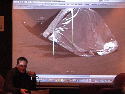 Les médias et les technologies définissent une nouvelle phénoménologie basée sur une temporalité faites d'instants de 24h00, et ce sont les rapports entre la mémoire, l'identité et un espace donné qui déterminent les expériences individuelles. Je considère très certainement internet à un niveau beaucoup plus symbolique en ce qui concerne les rapports qu'il entretient avec notre réalité quotidienne : Je ne me revendique pas comme artiste technologique produisant de nouvelles propositions censées alimenter le progrès moderne et le programme positiviste, naîf des industries technologiques. Je m'intéresse beaucoup plus aux dimensions humaines sollicitées par ces technologies dites 'nouvelles' Aussi dans cette présentation j'essayerai de présenter les différents aspects conceptuels des pièces que j'ai pu produire depuis les début du Web en 1995... |