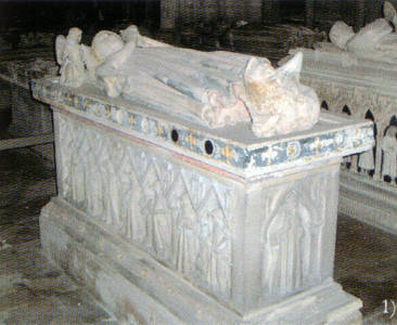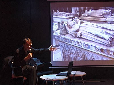 ![]() Philippe dit Dagobert, fils de Louis VIII et frère cadet de Louis IX, était né en 1222 et mourut probablement en 1234. Son tombeau doit avoir été commandé dès la mort du jeune prince et il s'agit donc du premier membre de la famille royale à avoir été enterré dans l'abbaye cistercienne de Royaumont. Le monument funéraire de Philippe Dagobert fut ainsi l'une des premières commandes de sculpture pour l'église abbatiale, consacrée le 19 octobre 1235. L'Occident médiéval avait déjà connu de nombreuses formes de sépulture, dont celle avec gisant et la tombe en forme de "coffre ". Le tombeau de Philippe Dagobert semble être le premier exemple où ces deux formules furent associées. D'autre part les personnages qui entourent le " coffre " ont été considérés fréquemment comme les ancêtres des " pleurants ", un thème qui connaîtra un développement exponentiel à la fin du Moyen Âge. De fait, les moines et les anges qui alternent sous les arcades illustrent à la fois les funérailles terrestres célébrées par l'abbé et ses frères et leur équivalent au ciel, où l'âme du prince va être reçue. La qualité de l'oeuvre, certainement commandée à un sculpteur parisien par la cour, se lit dans l'équilibre entre deux tendances contradictoires : la recherche de la vie, de la vraisemblance, de l'animation, mais aussi la retenue, voire l'austérité sensibles dans la rigueur de la mise en page ou la noble simplicité du gisant. Cependant notre vision actuelle du monument est faussée par l'absence de la polychromie, pour la première fois étudiée complètement dans le cadre du présent projet. L'étude conjointe des restes de couleur encore visibles sur certaines parties du tombeau et des sources écrites et visuelles a permis de distinguer les différentes couches qui furent appliquées au cours des siècles. La polychromie originale, qui coïncidait exactement avec la représentation du même prince dans un vitrail de l'abbatiale, se distinguait par sa palette vive et contrastée, avec des couleurs répondant tantôt à la réalité observée (vêtements luxueux de l'enfant : cotte rouge et surcot bleu décoré de motifs dorés), tantôt à la fantaisie et au goût de la variété (ailes des anges rouges ou bleues). Cet effet d'ensemble ne peut plus se percevoir aujourd'hui, si ce n'est par le moyen de techniques virtuelles. En effet, si le tombeau de Philippe Dagobert s'est conservé intact jusqu'à la Révolution, il a subi ensuite, avec les autres monuments funéraires de Royaumont et l'abbatiale elle-même, le sort qui fut réservé à tous les sépulcres royaux ou de la famille royale. Les sépultures, transférées à Saint-Denis depuis Royaumont, furent englobées dans la profanation générale et les tombeaux furent démontés. Passés par le musée des Monuments français, les fragments subirent de nombreuses reconstitutions successives. La perception du monument dans son contexte et dans son caractère original est donc désormais difficile, mais l'approche conjointe des chercheurs en sciences humaines et sciences exactes permet de tenter sinon une reconstitution complète toujours hasardeuse, une meilleure compréhension de ce chef-d'oeuvre de la sculpture gothique. Pierre-Yves LE POGAM.