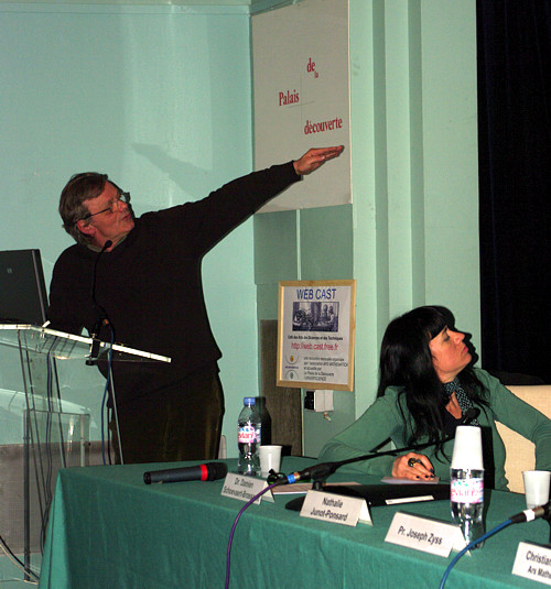 | INTERVENANTS Dr. Damien SCHOEVAERT-BROSSAULT Biologiste, morphologiste, Université Paris-Sud, GHU Antoine Béclère Maître de conférence des Universités, praticien hospitalier. Morphologiste et biomathématicien. Enseigne l'analyse d'images à l'Université Paris Sud. Co-auteur du livre "Dynamique de la cellule vivante". Il poursuit des recherches sur l'analyse et la modélisation du mouvement cellulaire par vidéographie à l'Institut Universitaire d'Hématologie de l'Hopital Saint Louis à Paris. Médecin habilité pour l'assistance médicale à la procréation. Il mène en outre un travail artistique sur l'image en réalisant des spectacles de théâtre d'objets. Anime depuis 1999 un groupe de travail "Voir et produire des images d'art et de science". Nathalie JUNOD-PONSARD Infosculpteur, pionnier des arts électroniques. Nathalie JUNOD-PONSARD est une artiste visuelle dont les recherches l'ont amenée à explorer l'influence de la lumière sur les systèmes biologiques humains, à expérimenter les limites de la perception et les effets psychotropes de la lumière proposant au public de participer à ces expérimentations en entrant directement dans les lieux qu’elle baigne de lumière. Elle a participé à de nombreuses expositions et manifestations d’art contemporain internationales : Festival de France en Inde, Hong Kong Fringe Festival (1998) French May à Hong Kong, Biennales d’arts visuels à Singapour, 1ère Nuit Blanche (2002) et 1ère Nuit des Musées à Paris (2005), Arts & Science Festival de Torun (Pologne), Luce di Pietra à Rome en 2007… et a exposé dans des musées nationaux, notamment au Centre Georges Pompidou en 2005, au Singapore Art Museum et au Bauhaus de Dessau. Elle prépare actuellement une œuvre lumière dans le cadre d’une commande permanente pour le cinquantenaire du Ministère de la Culture à Paris.VITKINE |